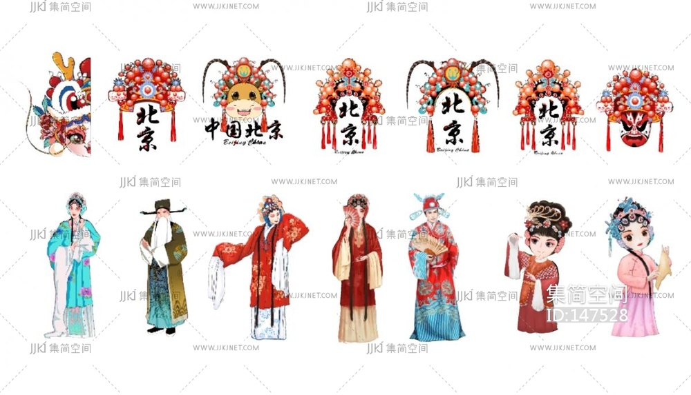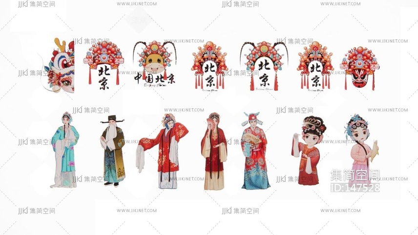 京剧戏曲人物2d人物su模型 su草图模型下载 [模型ID:147528]