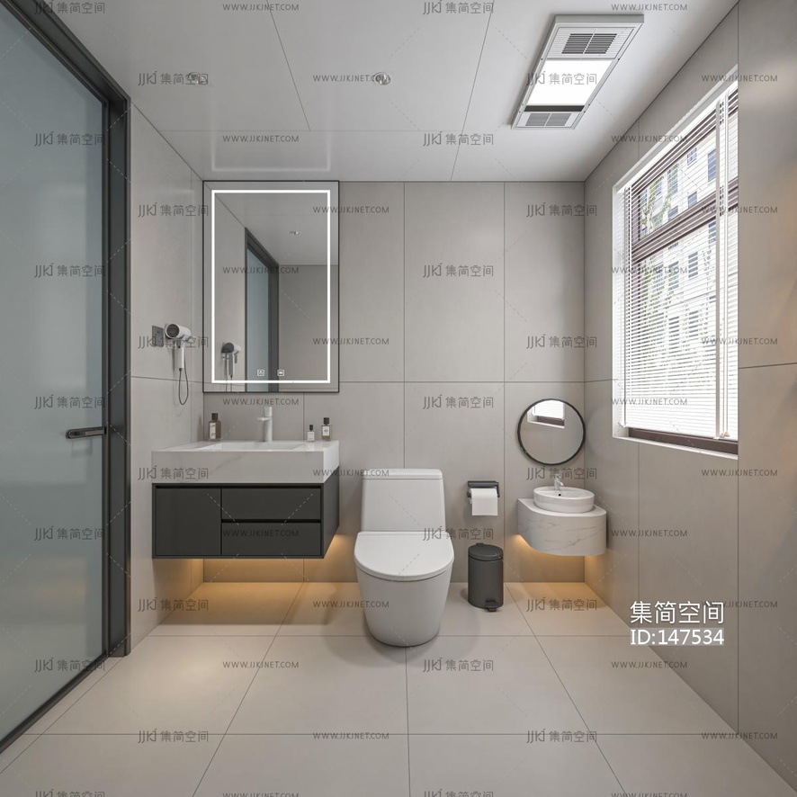 奶油风卫生间( 3d模型下载 [模型ID:147534]