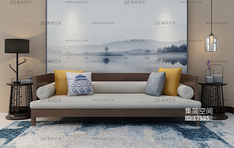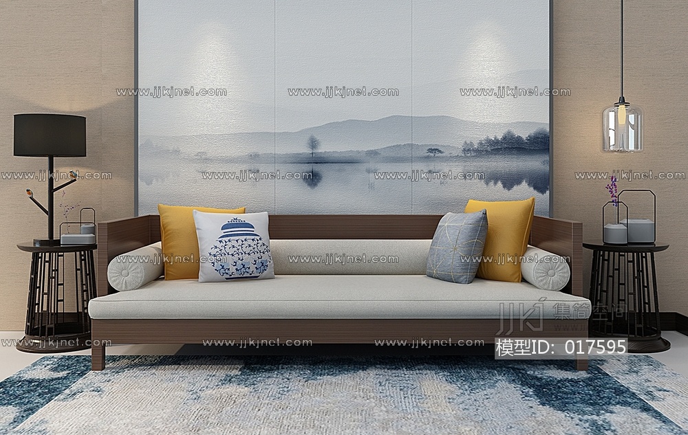 Z09-0105新中式沙发边几 3d模型下载 [模型ID:17595]