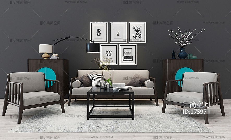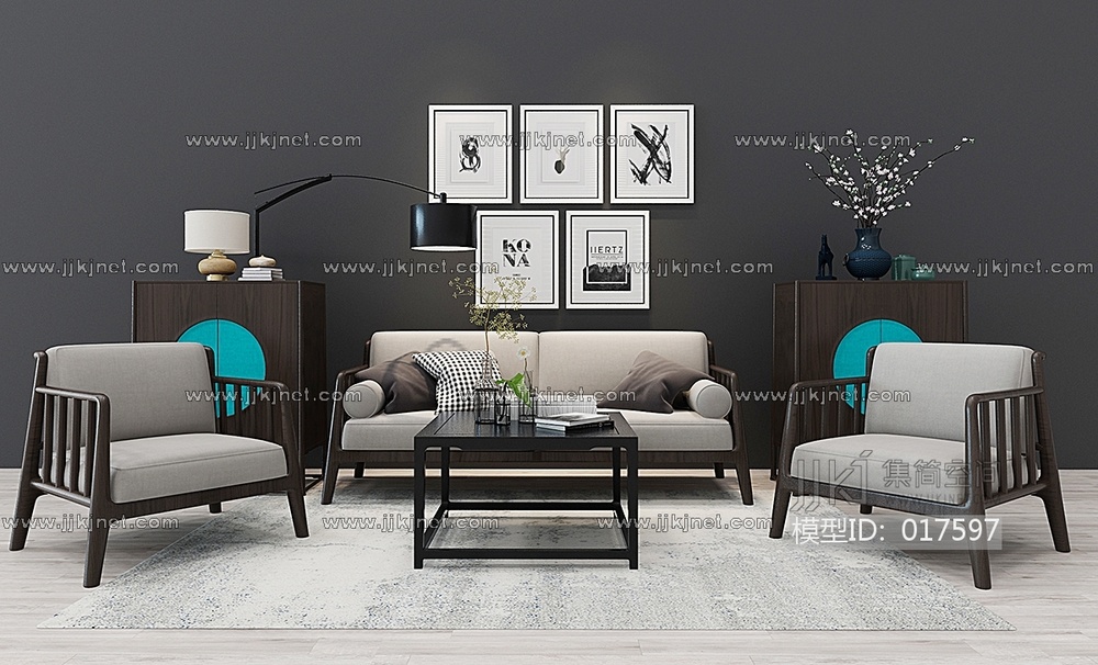 Z12-0105新中式沙发茶几装饰柜 3d模型下载 [模型ID:17597]