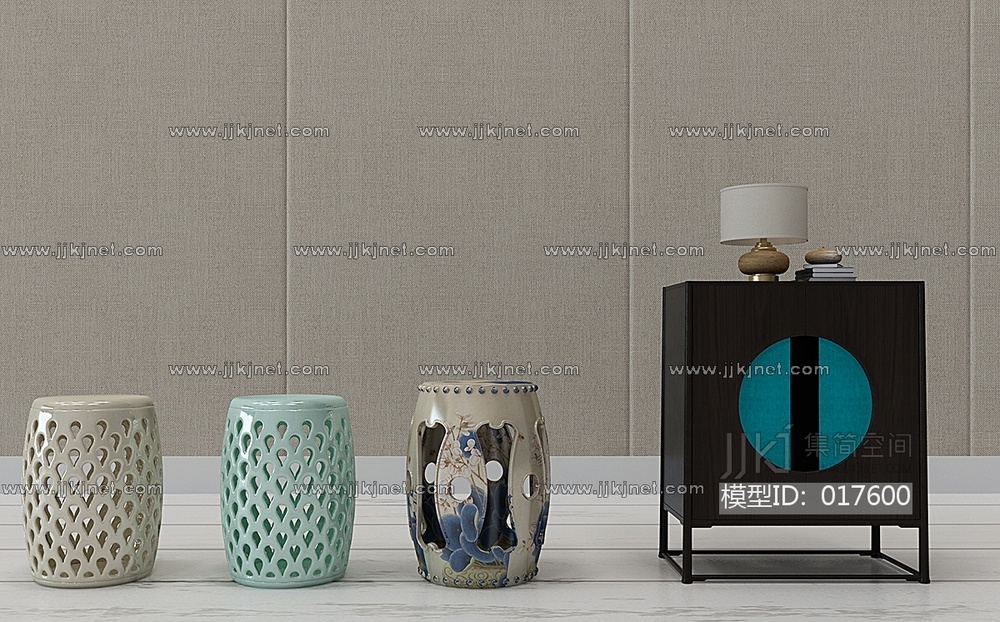 Z16-0105新中式鼓凳坐墩 3d模型下载 [模型ID:17600]