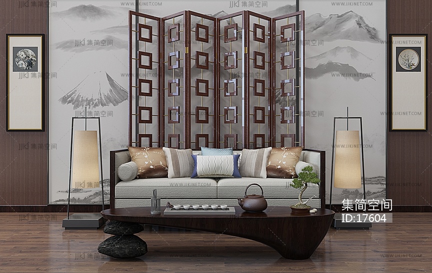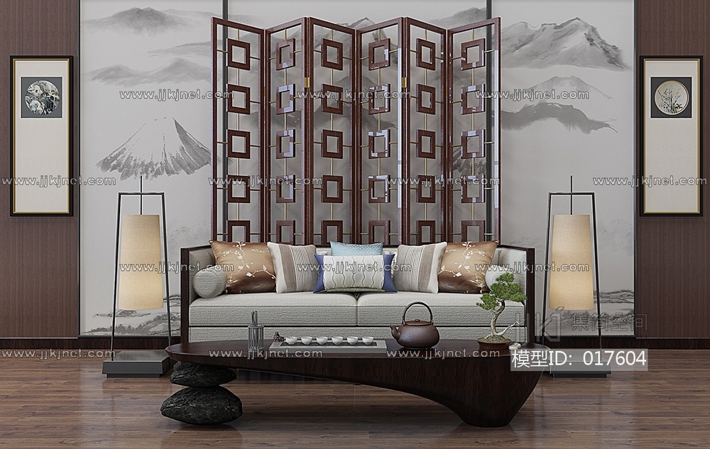 Z25-0105新中式沙发茶几隔断落地灯禅意茶几桌子 3d模型下载 [模型ID:17604]
