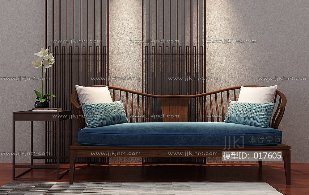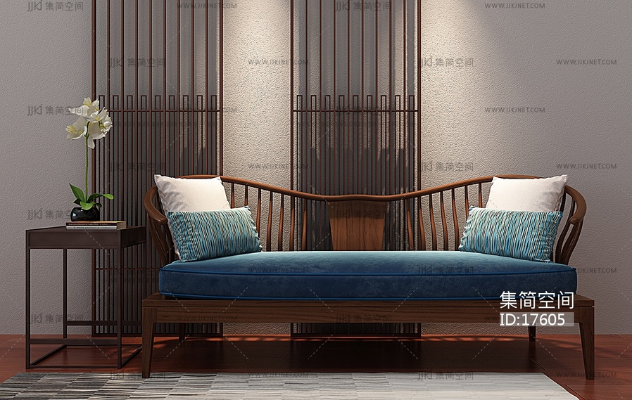Z26-0105新中式沙发边几蝴蝶兰 3d模型下载 [模型ID:17605]