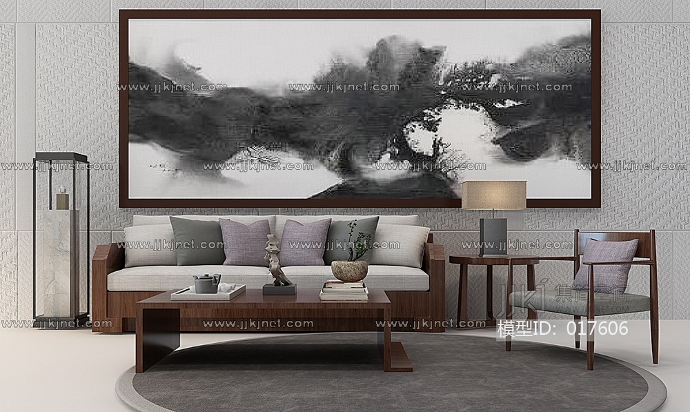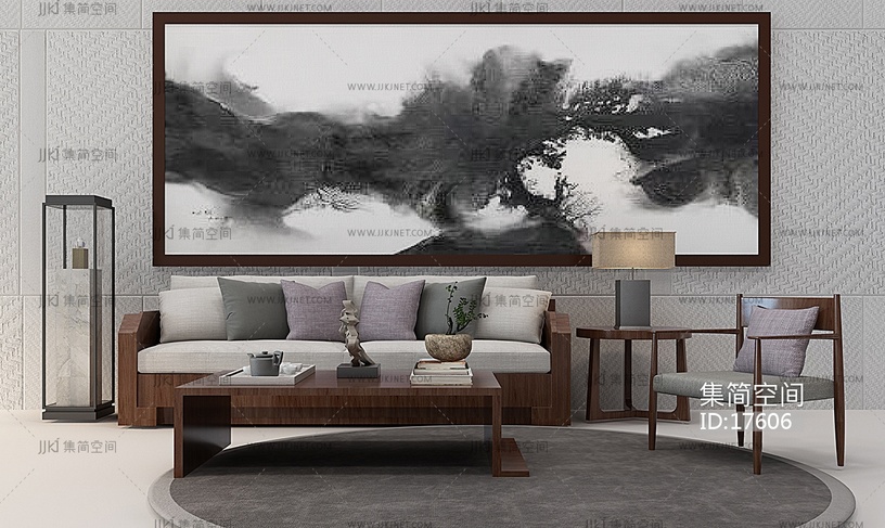 Z27-0105新中式沙发茶几椅子摆台 3d模型下载 [模型ID:17606]