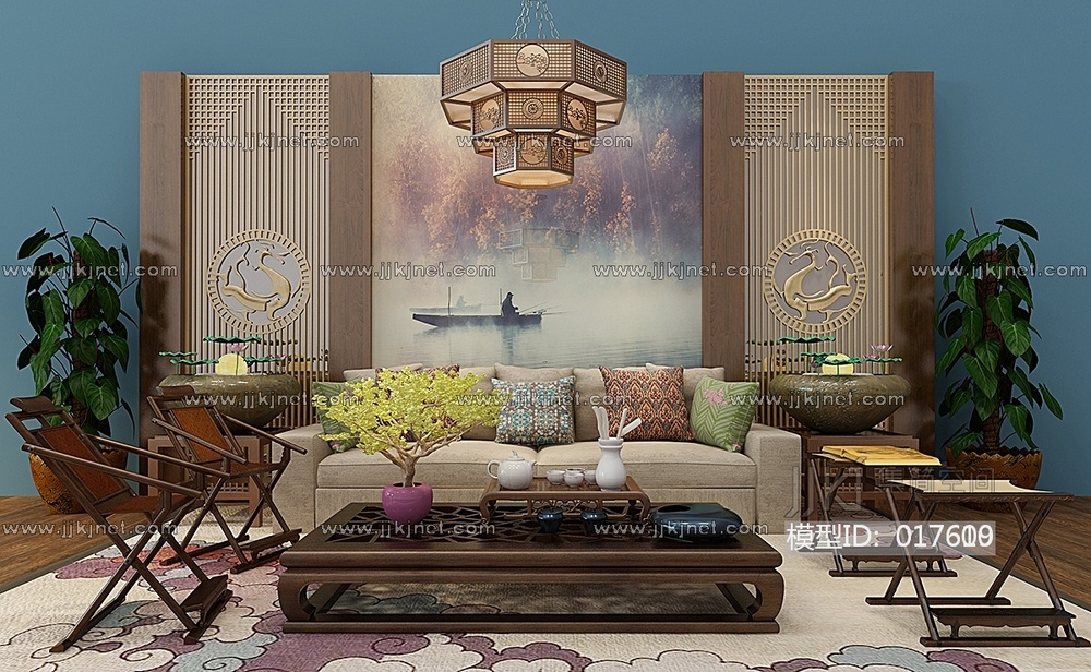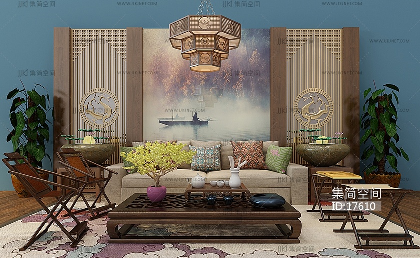 Z32-0105新中式泰式沙发茶几椅子组合 3d模型下载 [模型ID:17610]