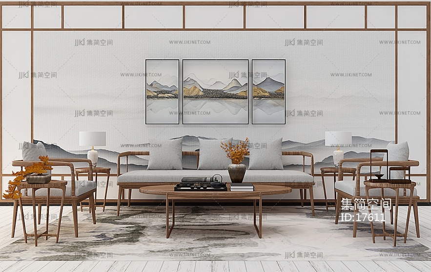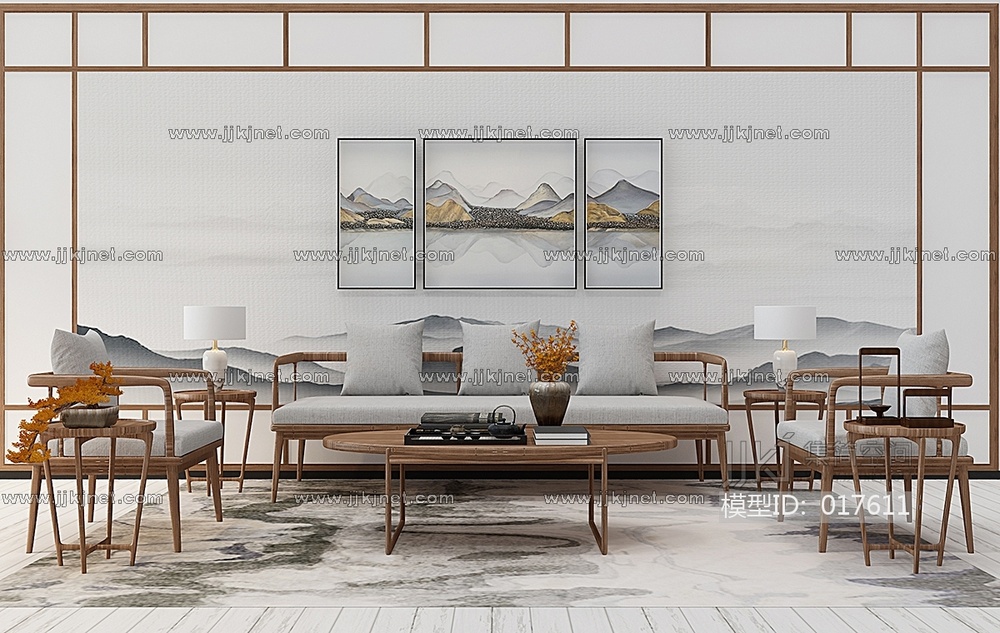 Z34-0105新中式沙发茶几椅子边几组合 3d模型下载 [模型ID:17611]