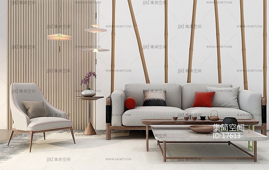 新中式沙发茶几茶具边几 3d模型下载 [模型ID:17613]