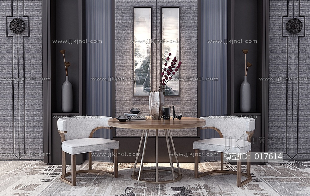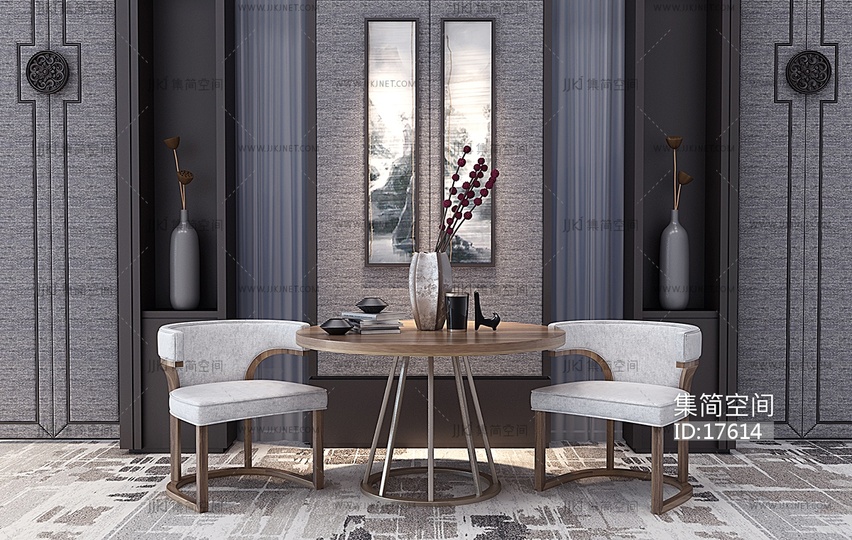 Z01-0103新中式圆形桌椅子摆件 3d模型下载 [模型ID:17614]