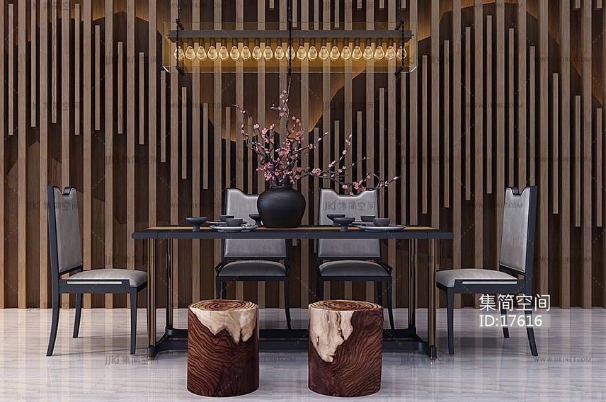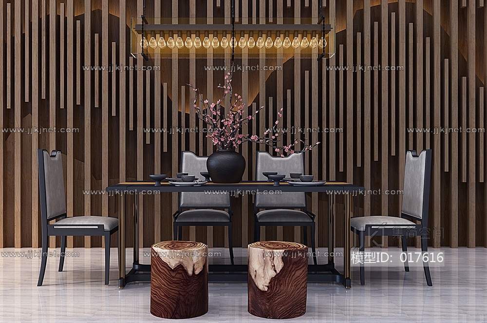 Z03-0103新中式餐桌椅木墩花瓶吊灯 3d模型下载 [模型ID:17616]