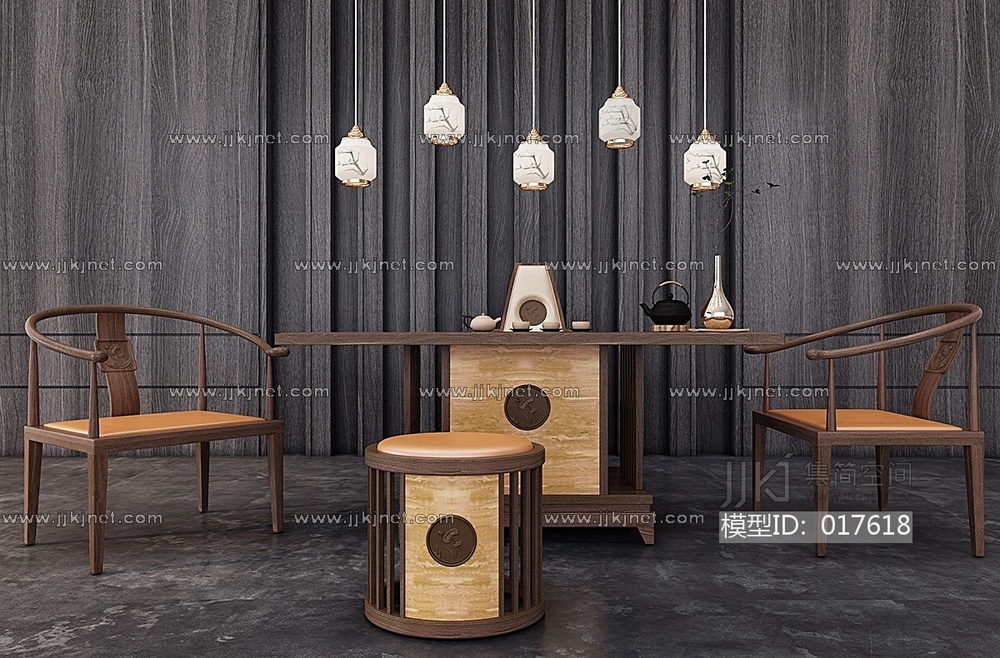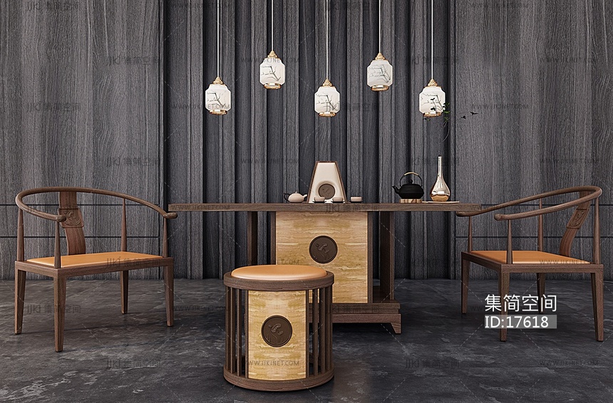 Z05-0103新中式茶桌椅圈椅吊灯 3d模型下载 [模型ID:17618]