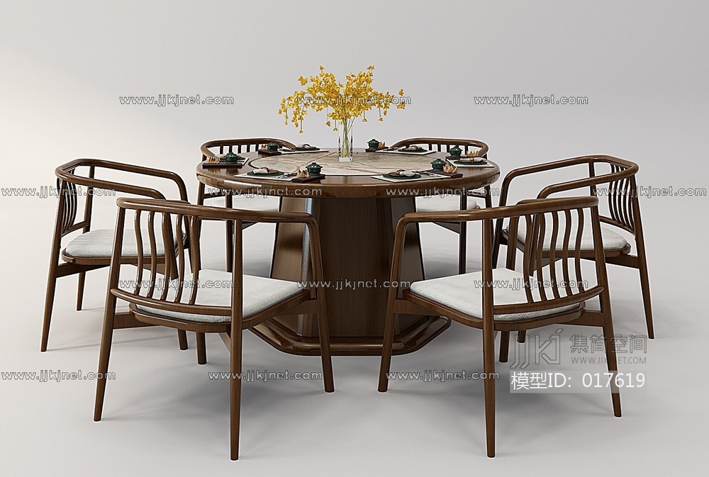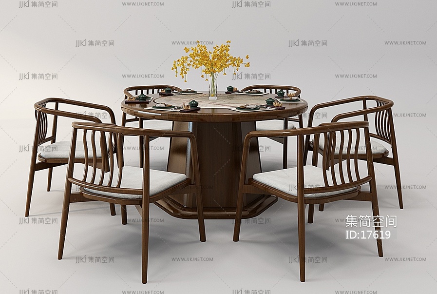 Z06-0103新中式圆形餐桌椅组合 3d模型下载 [模型ID:17619]