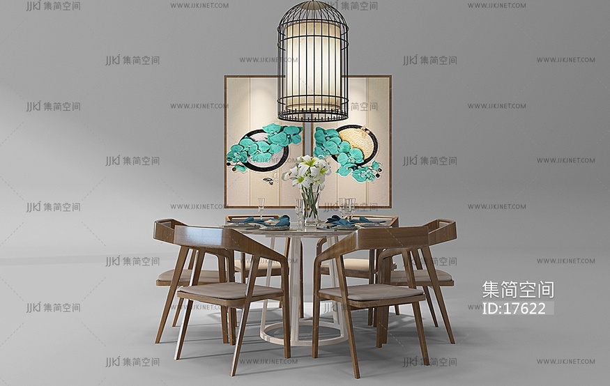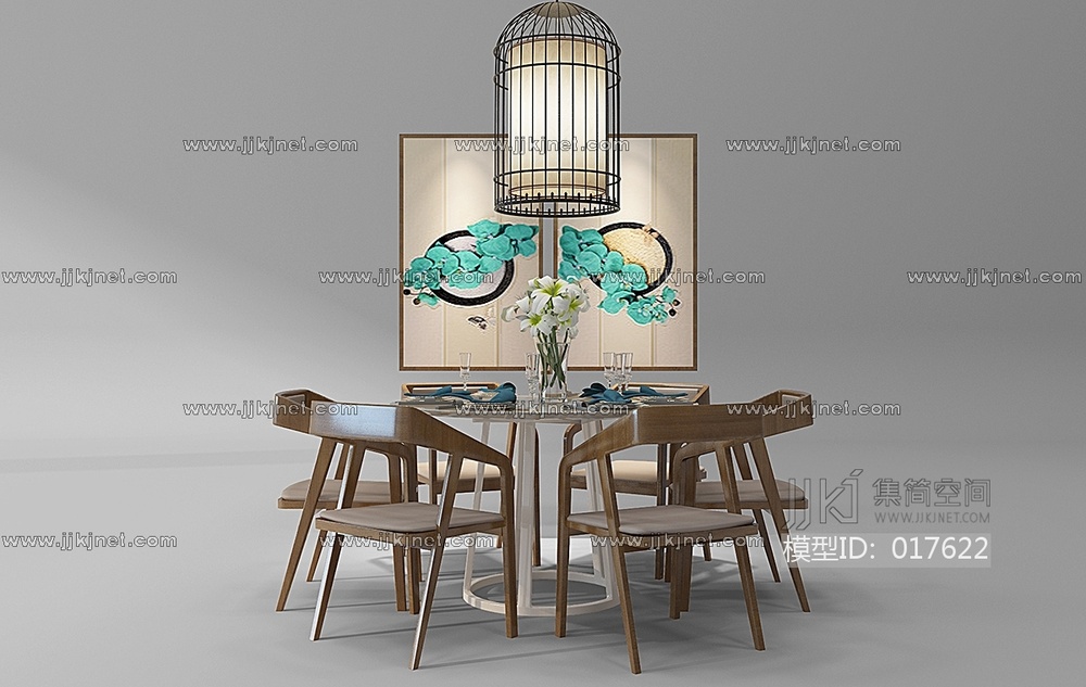 Z09-0103新中式圆形餐桌椅子组合 3d模型下载 [模型ID:17622]