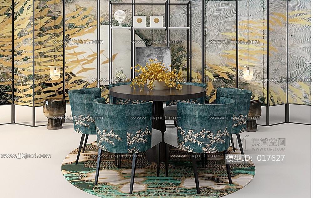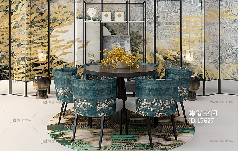 Z16-0103新中式圆形餐桌椅组合 3d模型下载 [模型ID:17627]