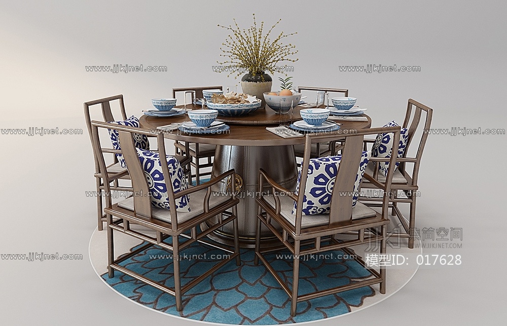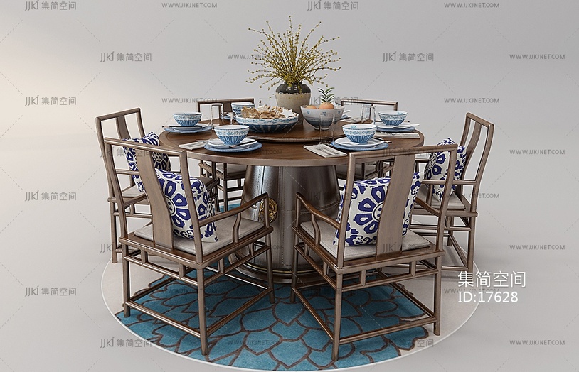 Z17-0103中式实木圆形餐桌椅组合 3d模型下载 [模型ID:17628]
