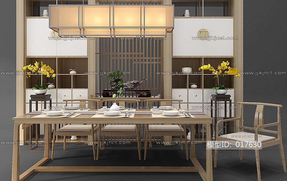 Z19-0103新中式餐桌椅组合花架蝴蝶兰餐具 3d模型下载 [模型ID:17630]