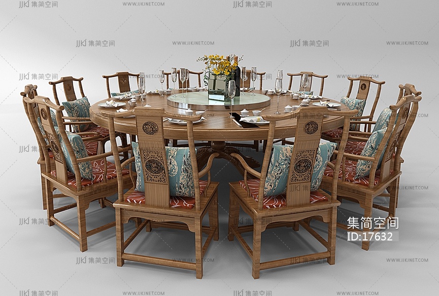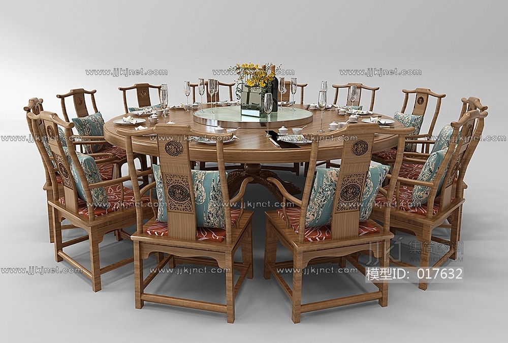 Z21-0103中式实木圆形餐桌椅组合太师椅 3d模型下载 [模型ID:17632]