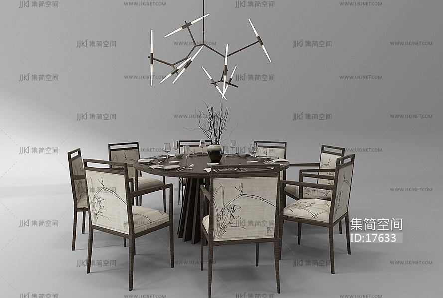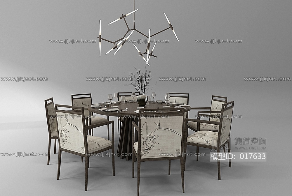 Z22-0103新中式圆形餐桌椅组合 3d模型下载 [模型ID:17633]