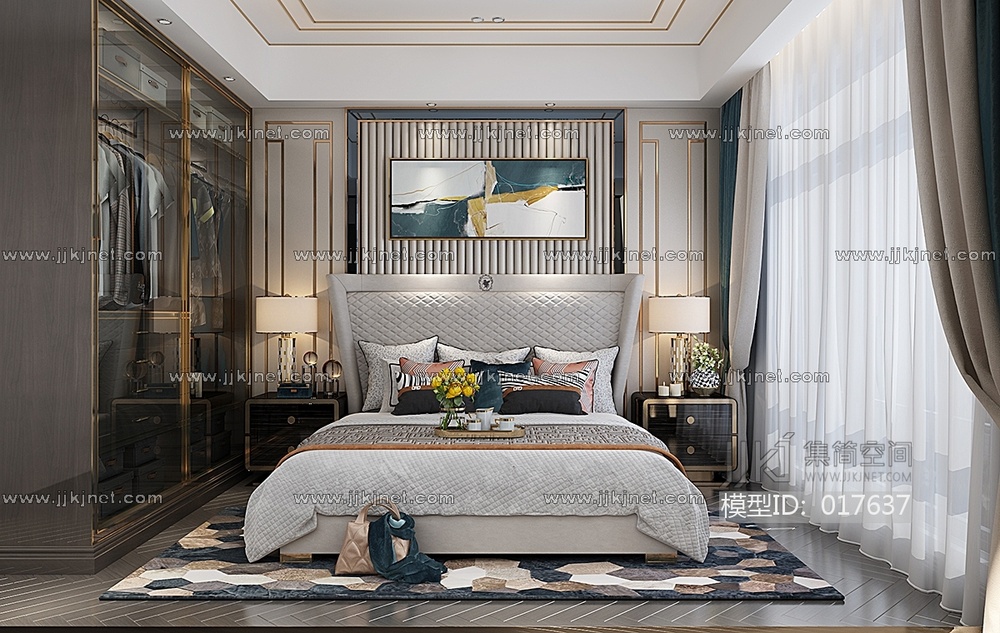 Z26-0103后现代欧式轻奢卧室床床头柜衣柜衣服皮包 3d模型下载 [模型ID:17637]