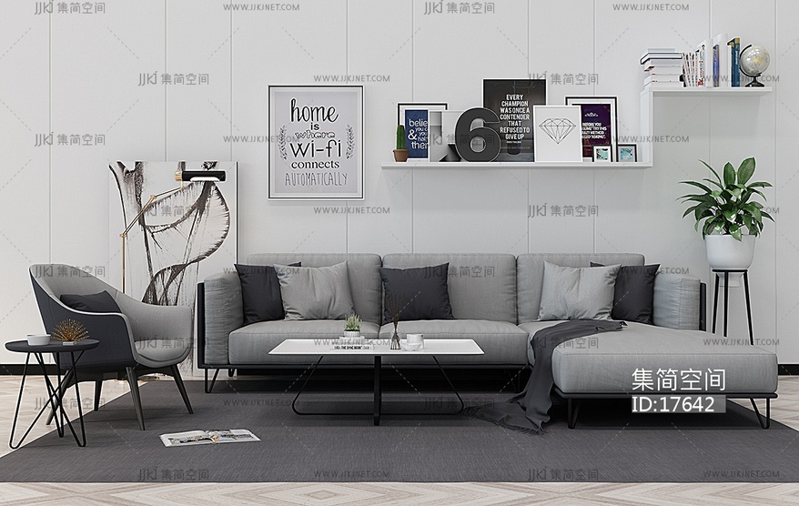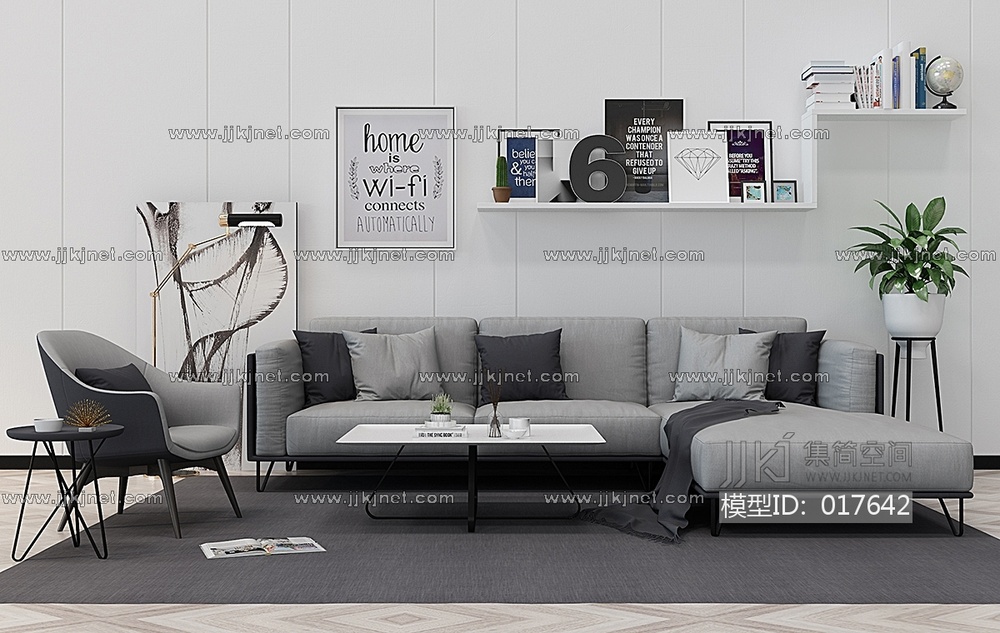 Z04-0109北欧现代沙发茶几休闲椅盆栽花架墙饰 3d模型下载 [模型ID:17642]