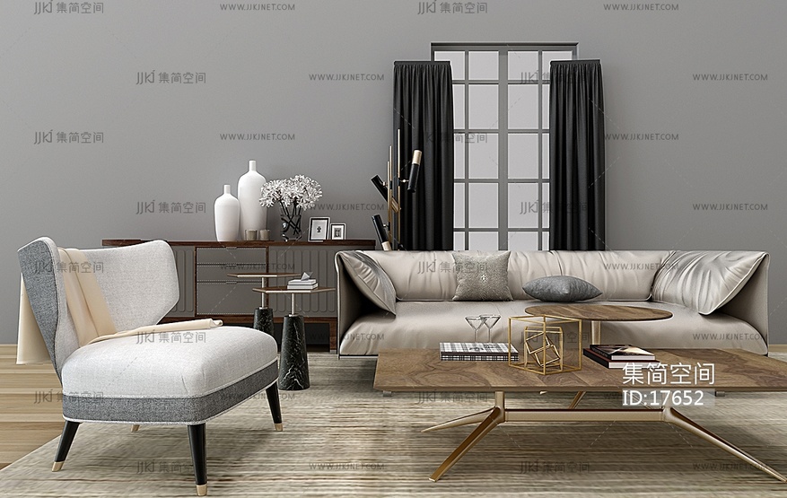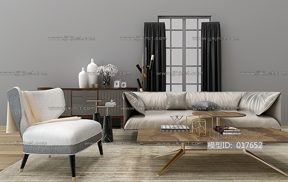 Z14-0109 北欧茶几组合餐边柜 3d模型下载 [模型ID:17652]