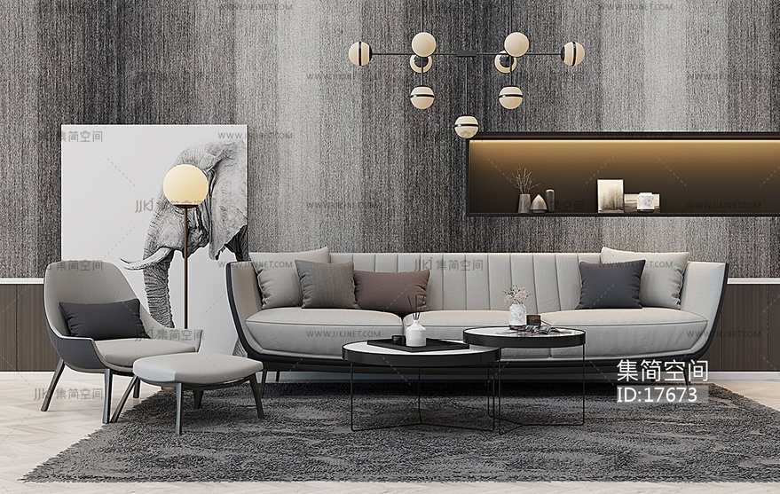 Z10-0110北欧沙发茶几休闲吊灯组合 3d模型下载 [模型ID:17673]