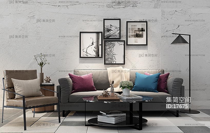 Z13-0110北欧沙发茶几休闲椅组合 3d模型下载 [模型ID:17675]