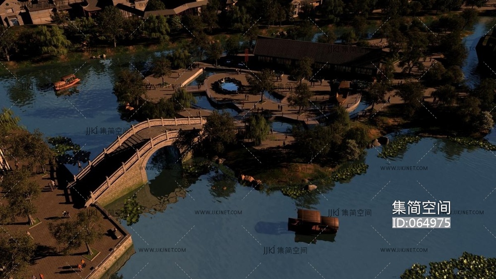 公园水系人造湖景观 3d模型下载 [模型ID:64975]