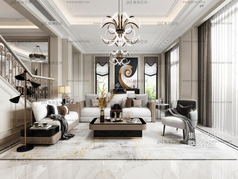 客餐厅现代客厅橱柜电视背景墙,奶油风休闲椅3d模型下载