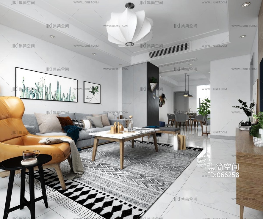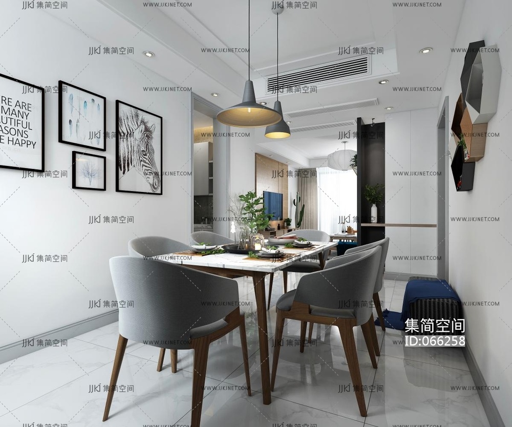 北欧客厅餐厅 3d模型下载 [模型ID:66258]