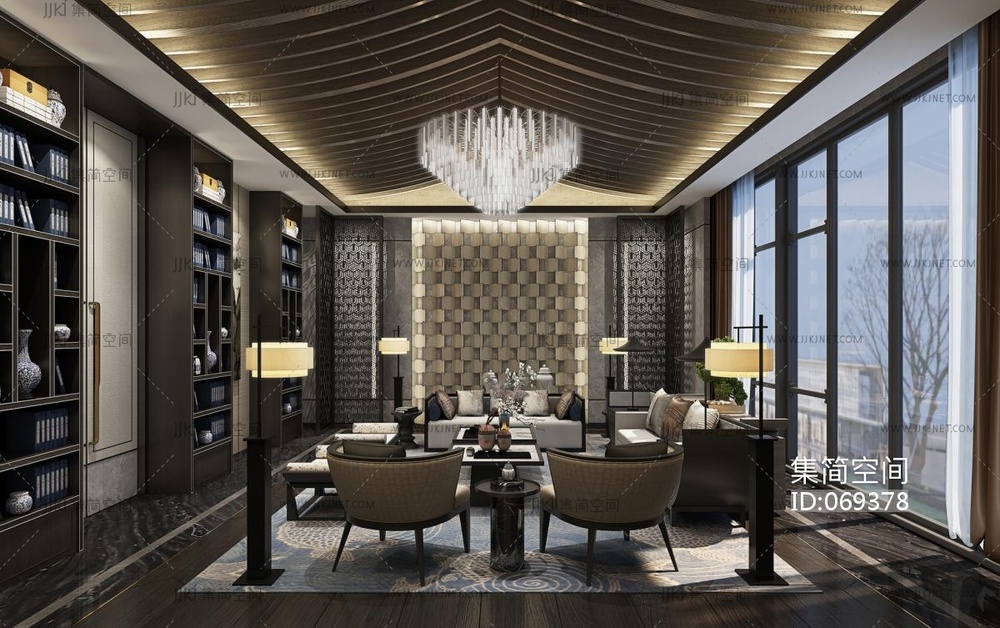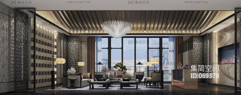 新中式售楼处 3d模型下载 [模型ID:69378]