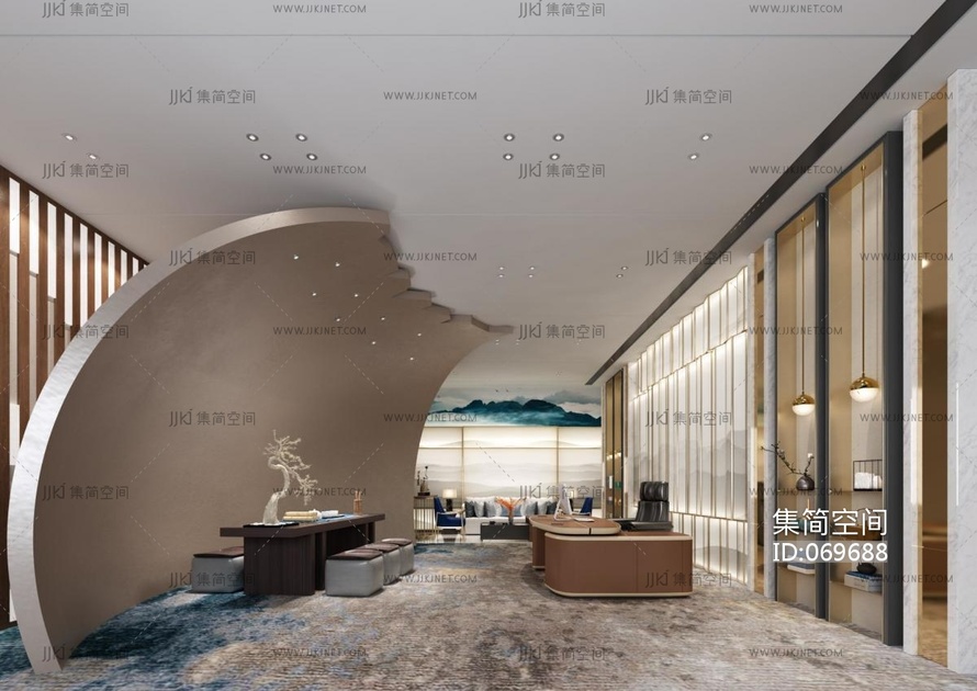 新中式事业单位领导办公室3d模型下载