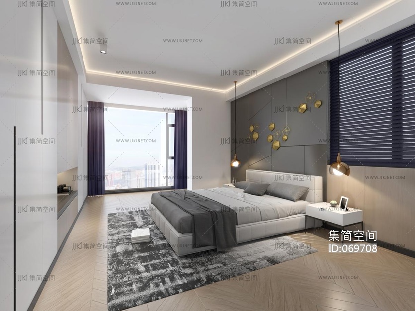 6法式中古家居卧室_主卧_飘窗卧室_高级灰卧室3D模型cr3d模型下载