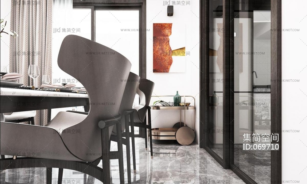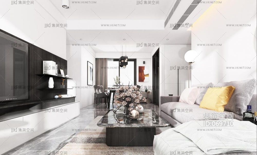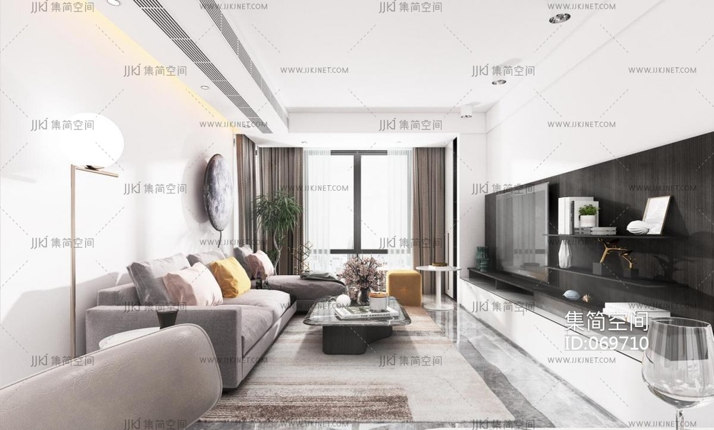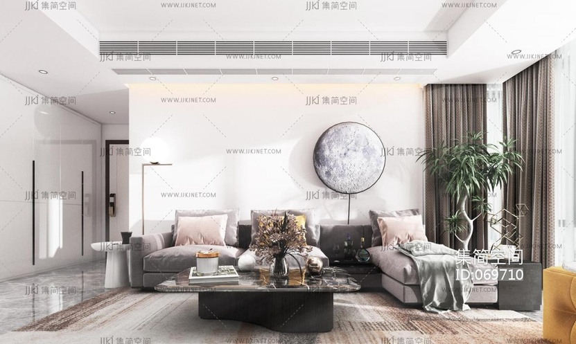 中古风客厅,美式客厅,圆形茶几,装饰画,移动电视,3d模型下载