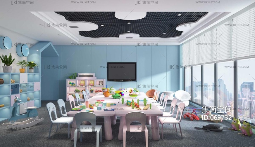 现代幼儿园,幼儿园活动室教师儿童区3d模型下载