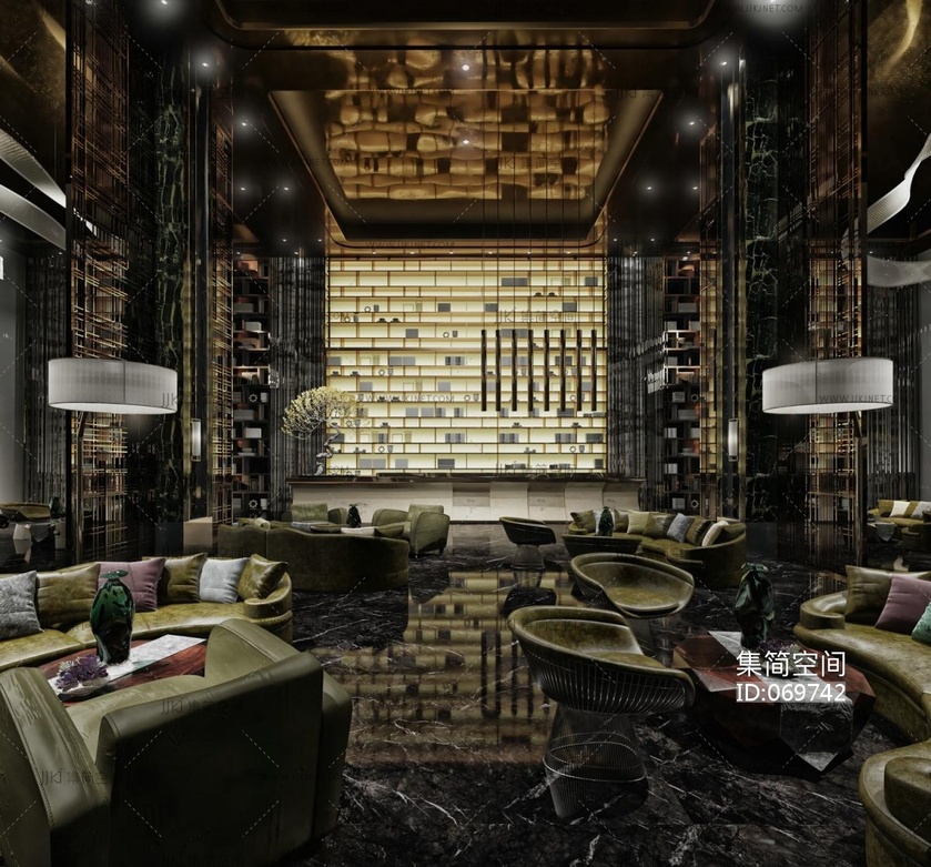 新中式售楼处入口大堂服务太接待台3D模型3d模型下载