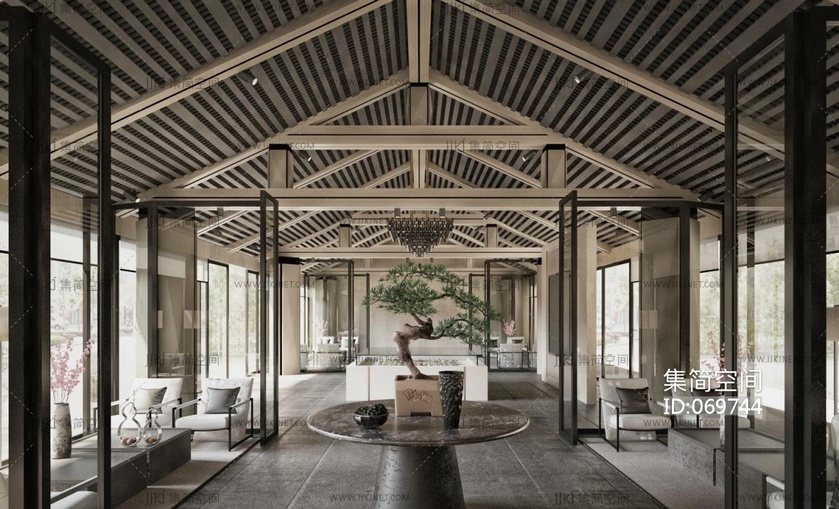 新中式售楼处入口大堂服务太接待台3D模型3d模型下载