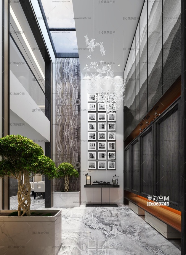 新中式售楼处入口大堂服务太接待台3D模型3d模型下载