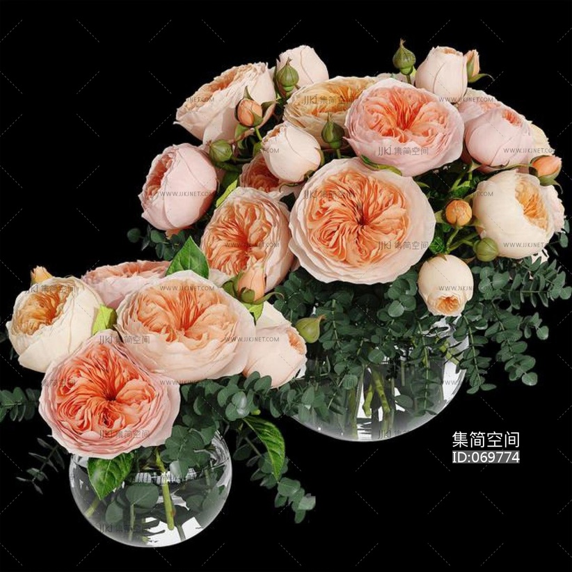 现代花艺__玻璃花瓶_鲜花_插花_装饰摆件3D模型3d模型下载