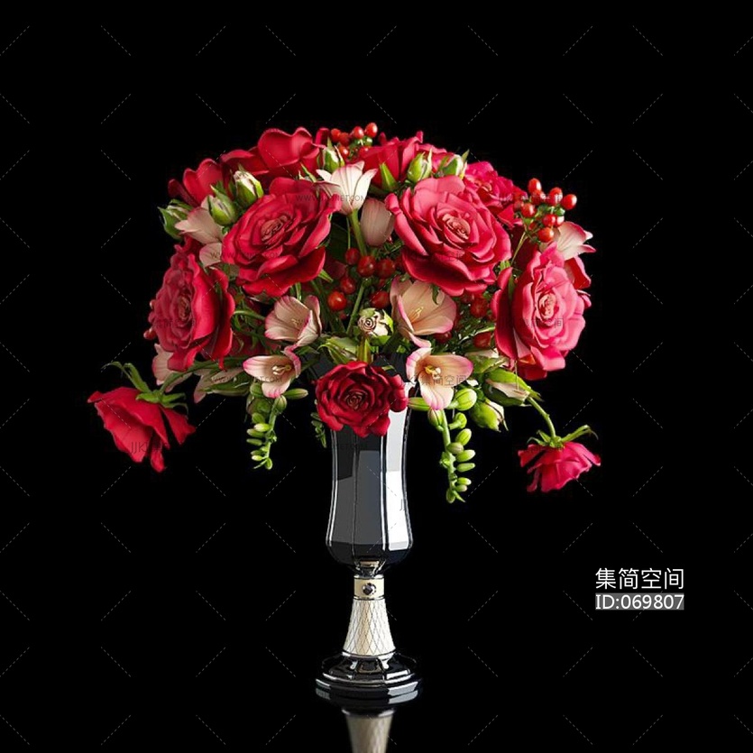 现代花艺__玻璃花瓶_鲜花_插花_装饰摆件3D模型3d模型下载