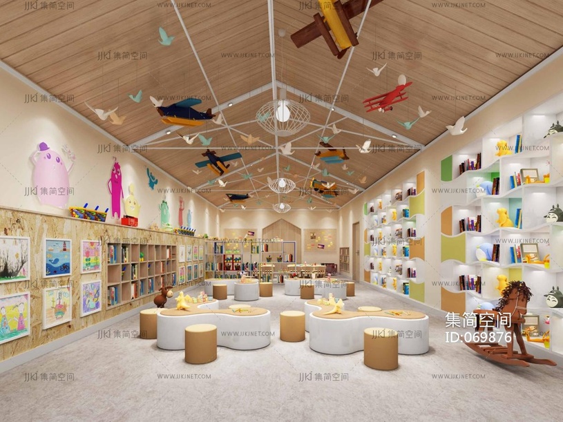现代幼儿园,幼儿园活动室教师儿童区3d模型下载