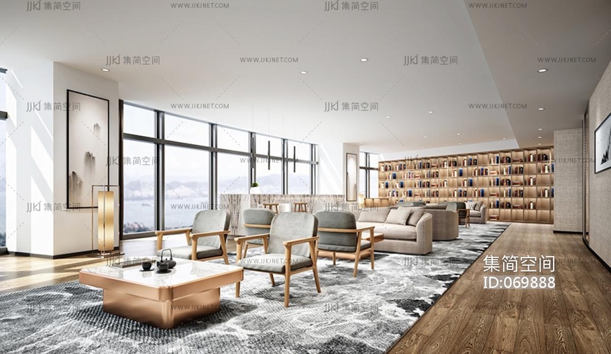 新中式办公休闲区,休闲沙发阅读区 3d模型下载 [模型ID:69888]