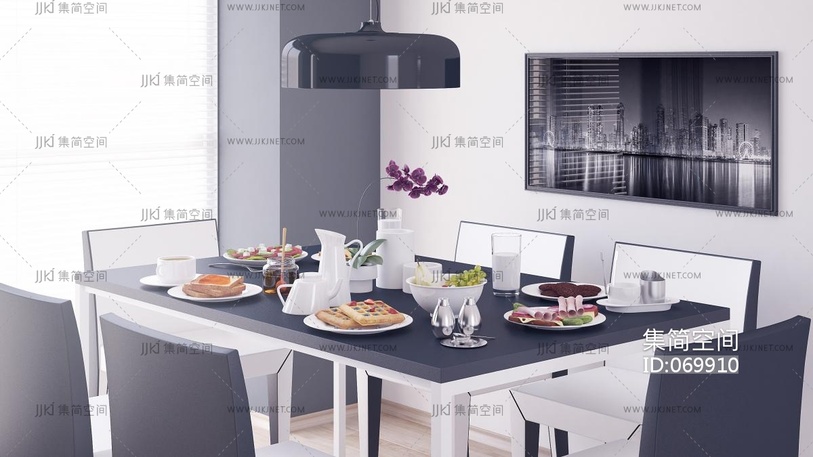欧式古典餐厅古典雕花餐桌椅 3D模型3d模型下载