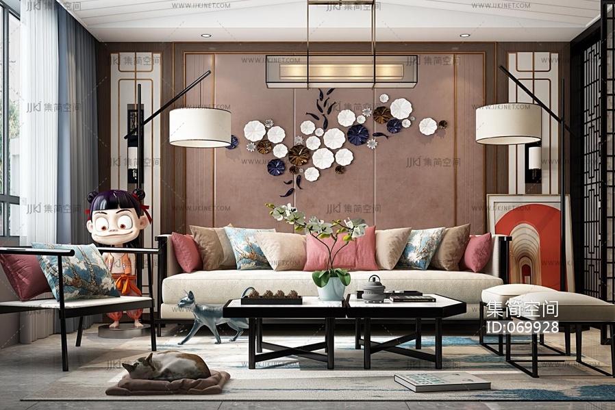 H08 新中式客厅 3d模型下载 [模型ID:69928]