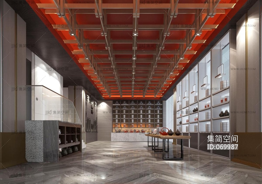 现代新中式酒店自助餐厅,餐台3d模型下载