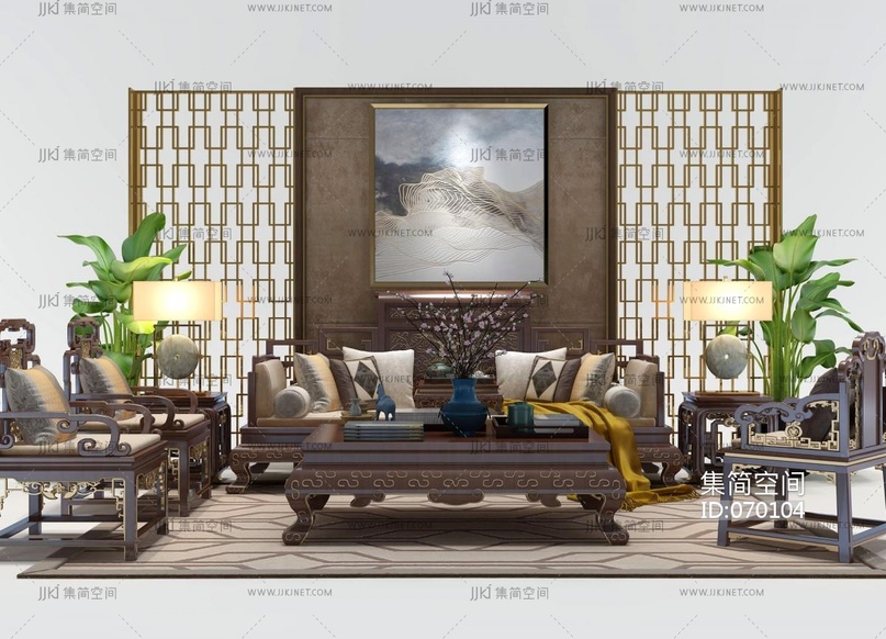 Z15中式沙发 3d模型下载 [模型ID:70104]