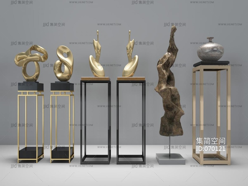 现代新中式雕塑摆件_饰品摆件组合3D模型3d模型下载