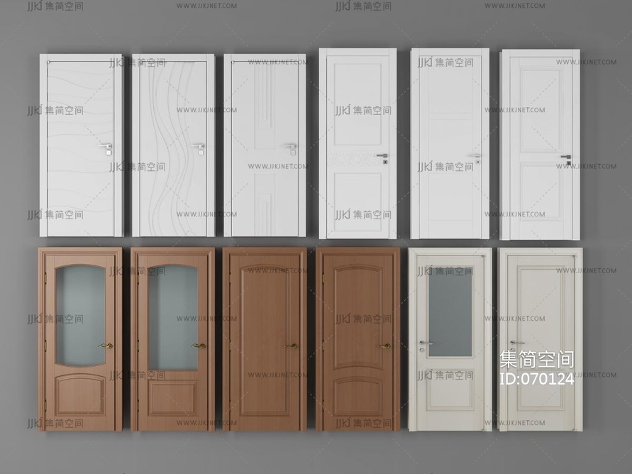 奶油简约双开门_玻璃门_厨房门_阳台门_双开门3D模型3d模型下载
