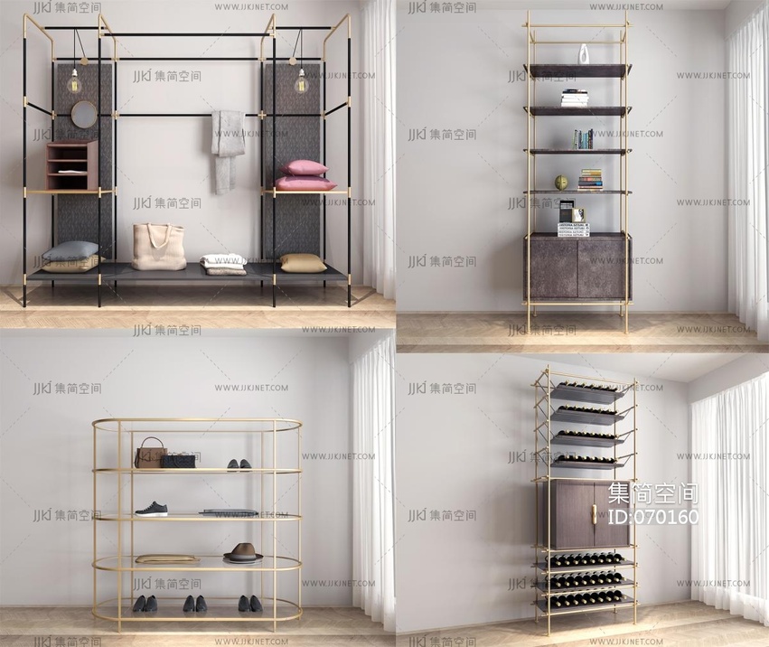 Z01-1102现代金属衣柜酒柜装饰架衣架酒架鞋子皮包3d模型下载 3d模型下载 [模型ID:70160]