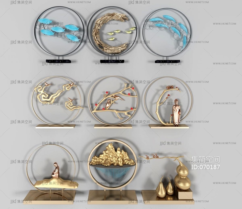 现代新中式雕塑摆件_饰品摆件组合3D模型3d模型下载