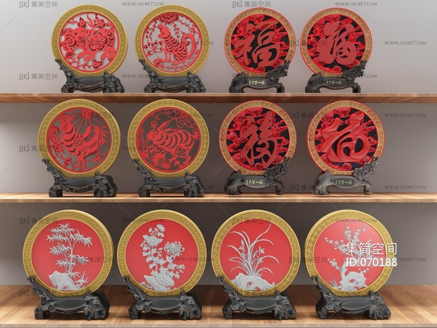 新中式盘子摆件 3d模型下载 [模型ID:70188]